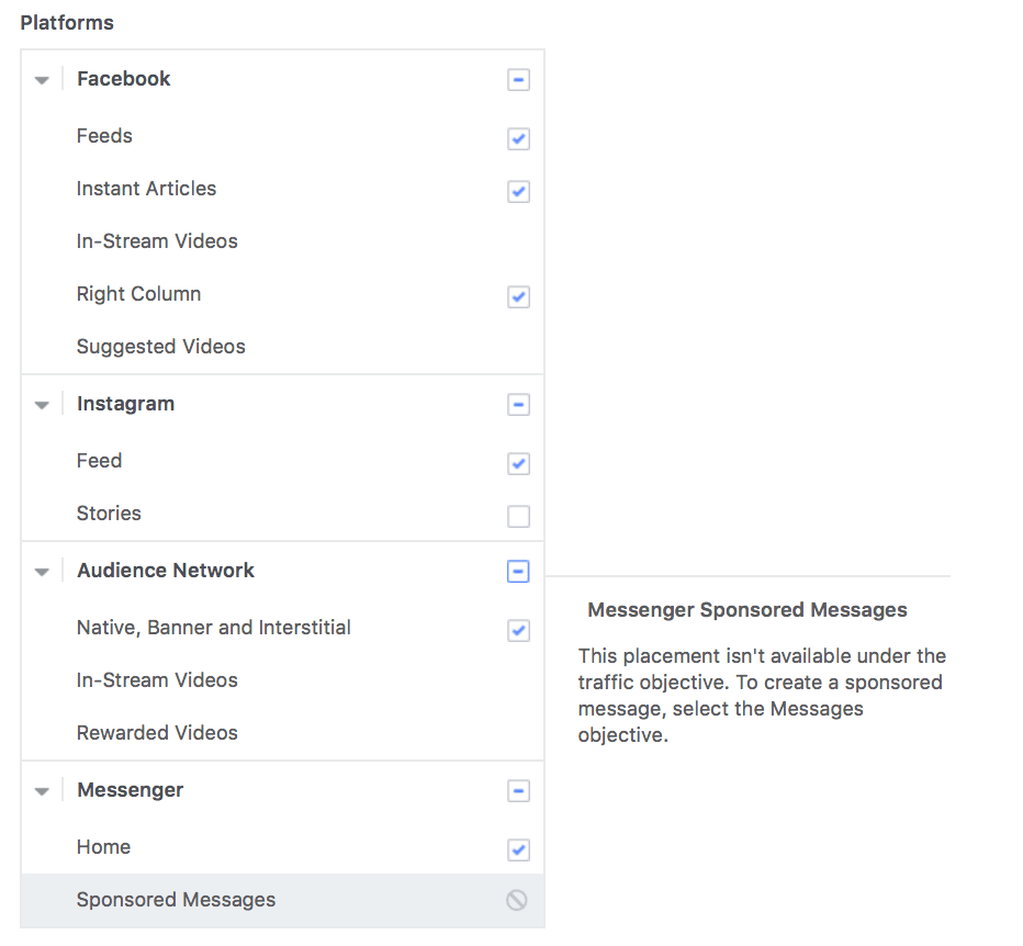 If you’re running Instagram Story Ads, however, you can’t choose any other placements.