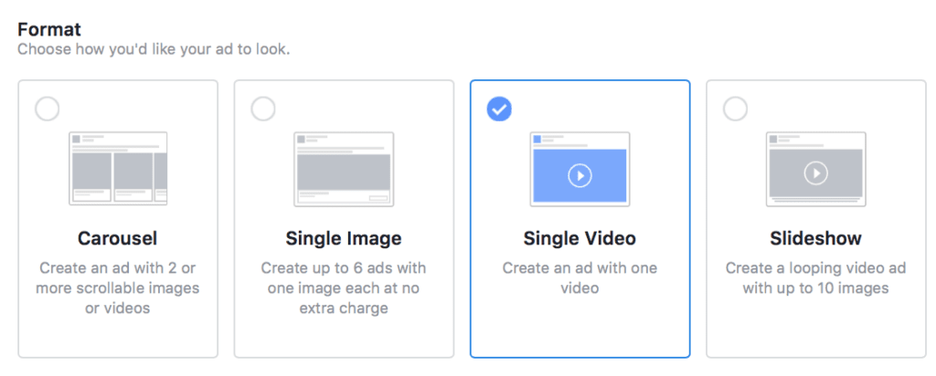 Choose the objective that aligns with the direct goal of your ads. If you have a video ad, for example, but want to drive conversions, choose the conversions objective instead of video views. Facebook will use your objective to determine which audience members to show your ad too, optimizing for users most likely to take the desired action.