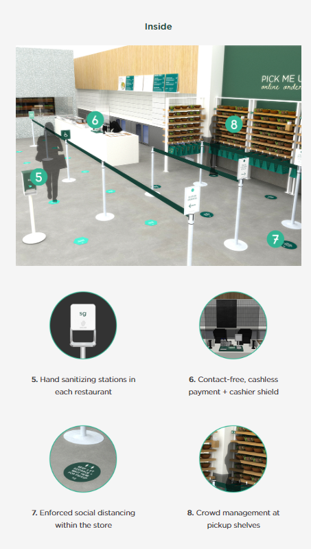 In Sweetgreen’s reopening email (above and below), they included details about new policies for both indoor and outdoor aspects of the business: