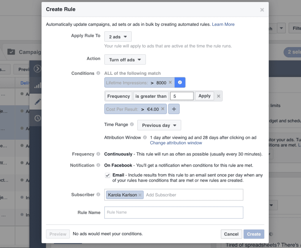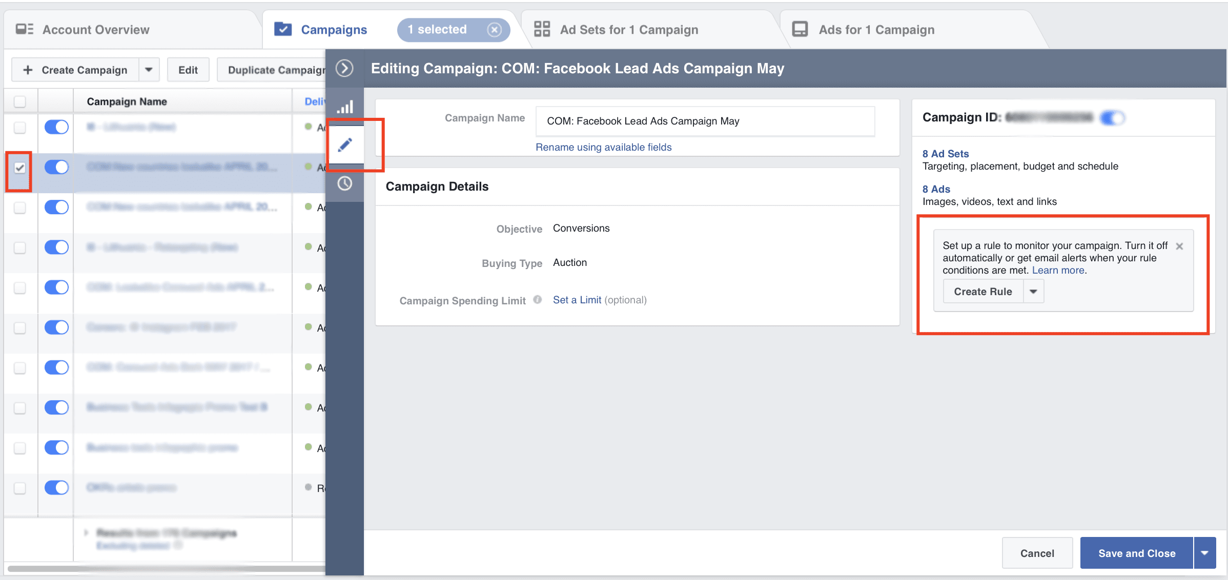 • 4 – When setting up a new Facebook ad campaign, select a ruleset you’d like to apply