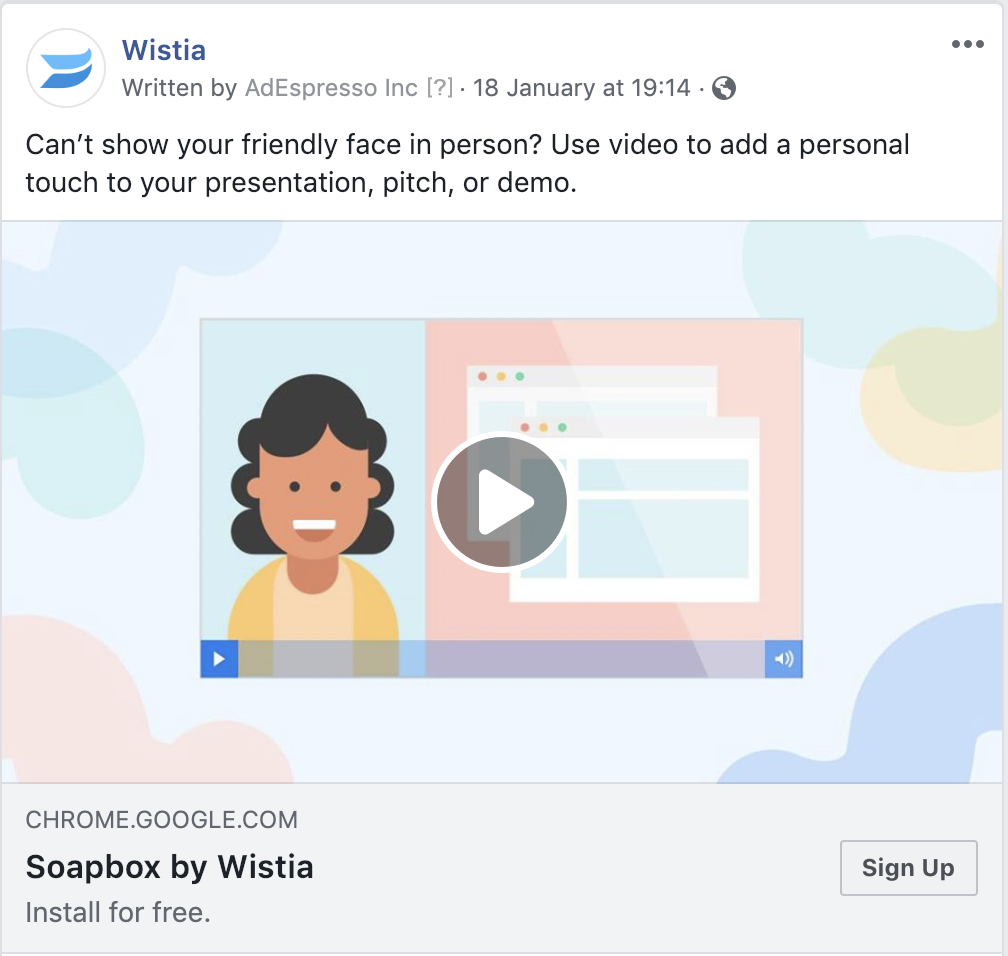Users were taken to the Chrome web store and then after installation were redirected to a Soapbox landing page where a custom conversion based on Wistia’s Facebook pixel was fired.