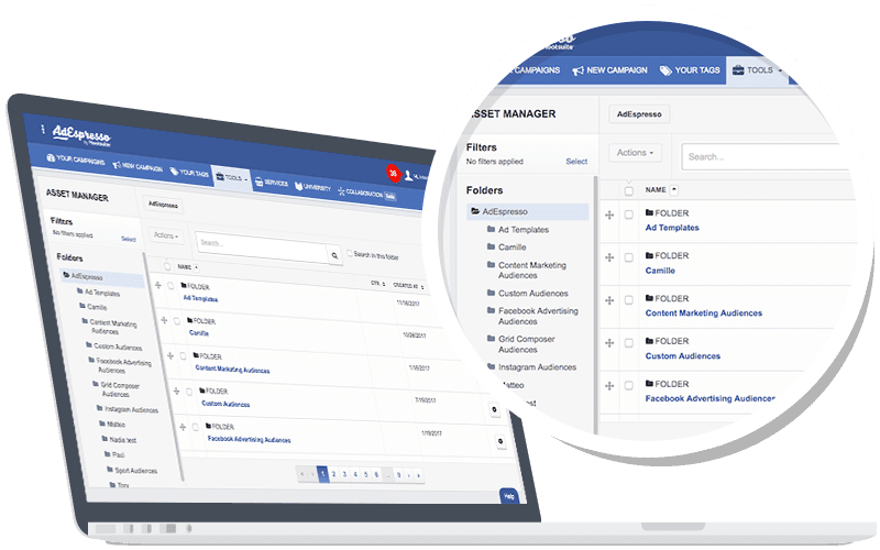 Creating multiple audiences and looking for a way to easily categorize and retrieve them when creating your campaign? Use AdEspresso’s Asset Manager to easily store all of your advertising assets in a single place and have them organized by objective, campaign, or persona (or any way you like)!