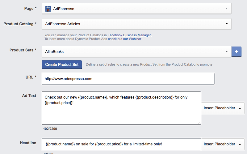 Each e-commerce advertiser knows how powerful Dynamic Ads can be – but we also know how painful they can be to create! Quickly create Dynamic Ads and avoid the complicated setup with AdEspresso’s user-friendly creation process.