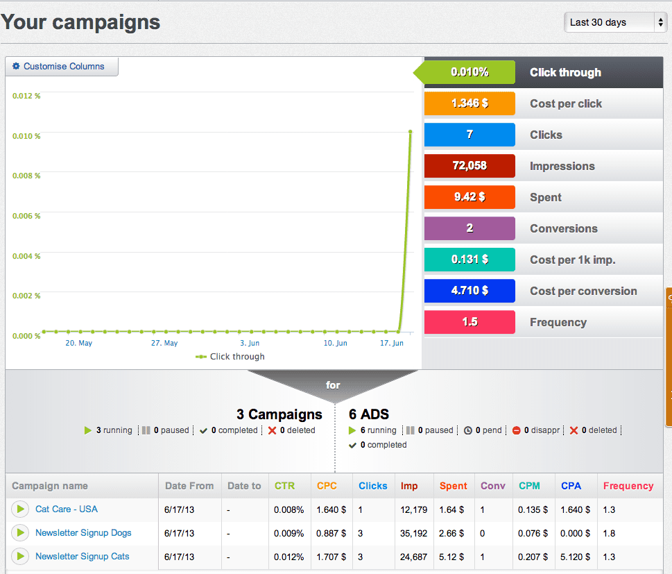By using AdEspresso to created your Suggested Post campaign (as well as all other types of Facebook ads) you will get deeper insights into the performance of your ads in a really nice visual format: