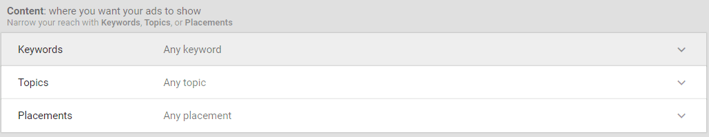 These three options are the guiding principles on which YouTube places your ads. The previous selections focused on audience, but these will determine what videos your ads show up on.
