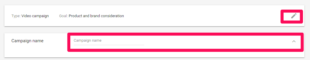 Give your campaign an easily identifiable name based on your objective, which you can also edit by clicking the pencil icon if you change your mind: