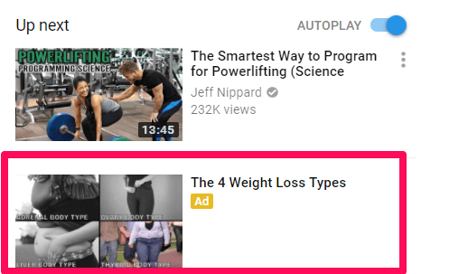 Sure, it does have an ugly yellow “Ad” label on it. But when you compare the topics of your video to the ads shown, it’s extremely relevant. And that’s what drives clicks.
