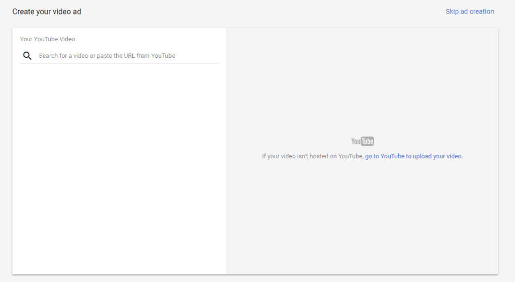 For this step, you need an active YouTube account with video content on it. If you don’t have videos on your YouTube, you will have to upload an ad and use that as your video ad: