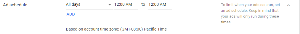 Lastly, you can give your ads a schedule to operate on: