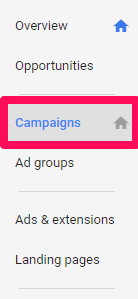 To get started with campaign set up, fire up your AdWords dashboard and click the campaigns tab: