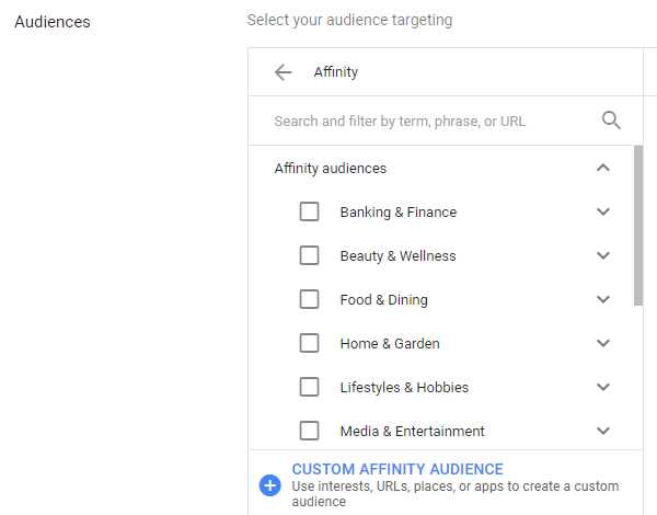 Affinity groups allow you to get very specific in what audience you are looking for. You can even combine affinity audiences with in-market audiences to narrow down your target market: