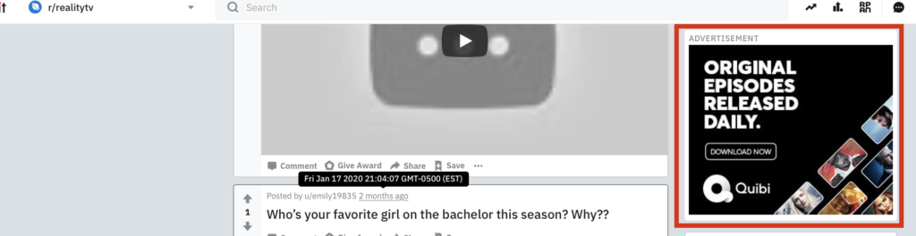 Another streaming platform is currently advertising in subreddits like “realitytv” and “tvshows” to advertise their app.