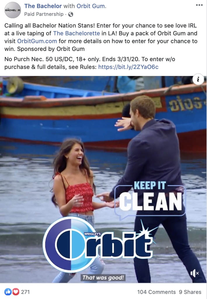 Below, the Bachelor was raffling off a chance to win tickets “to see love IRL” and attend some event in the future.
